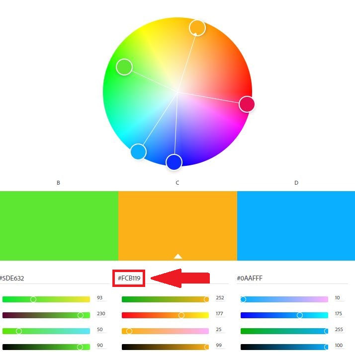Kopiere den Farbcode deiner Lieblingsfarbe (Zum Beispiel: #FCB119 wie hier in Rot markiert)